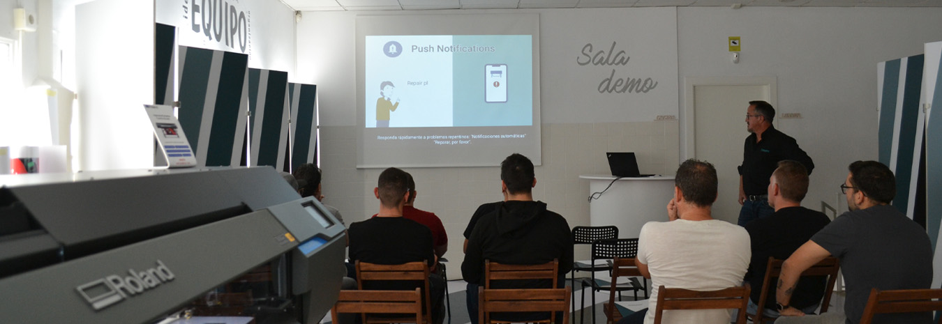 En el primer bloque del Curso Wrapping Totenser 2023, nuestro técnico oficial de Roland, Francisco Payá, explicó las nuevas funciones de la generación TrueVIS, así como la app de monitorización de equipos de Roland: Roland DG Connect.