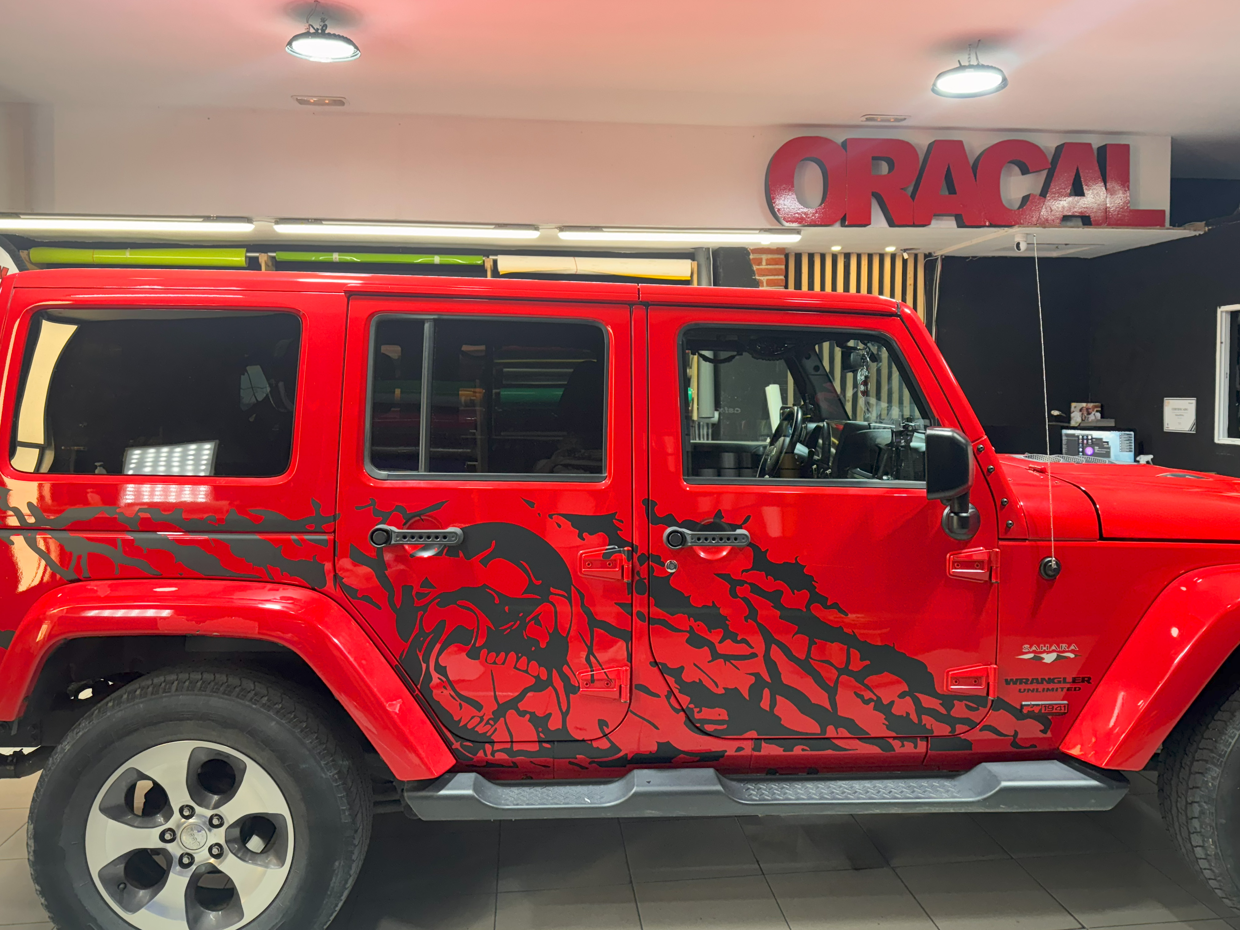 El acabado mate le da un toque moderno y profesional en cualquier superficie. Y no solo en vehículos corporativos, sino también en coches personales, como en este Jeep Wrangler.