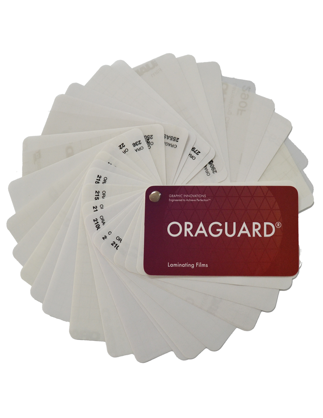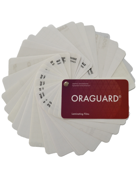 Muestrario de series y acabados de laminados ORAGUARD en abanico