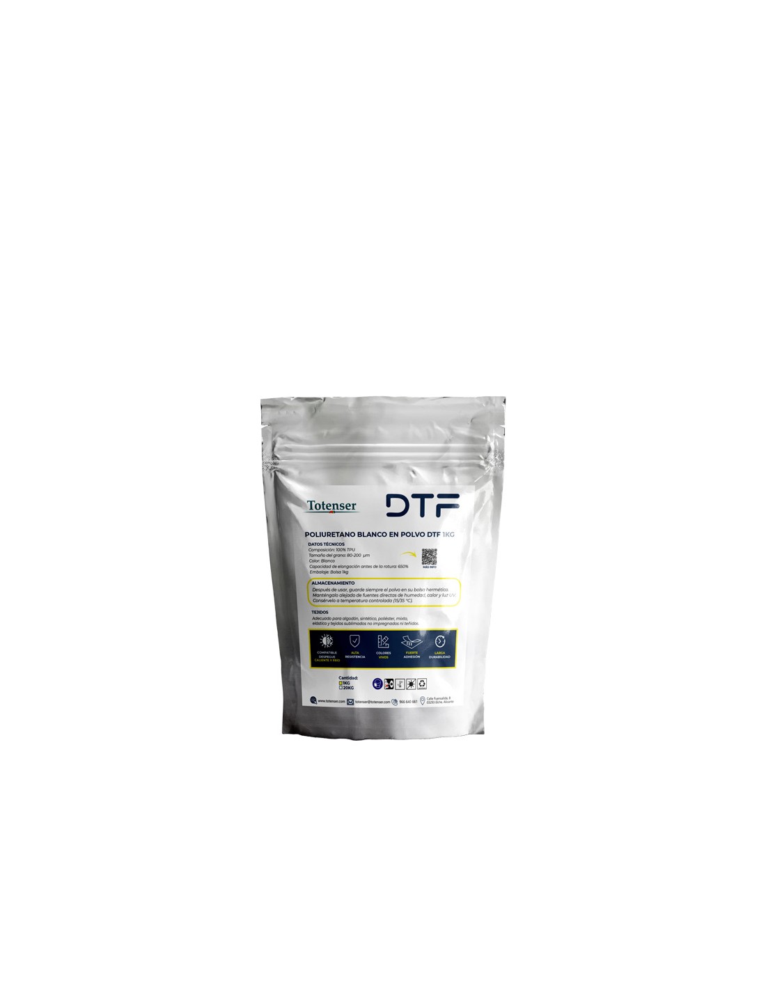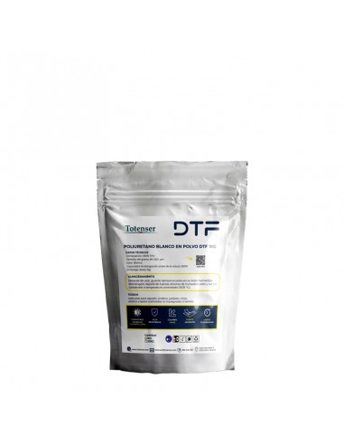 El polvo de poliuretano es un material flexible, ligero y resistente a la abrasión. Es utilizado para la creación de diseños de alta calidad mediante la técnica DTF (Direct Transfer to Film)