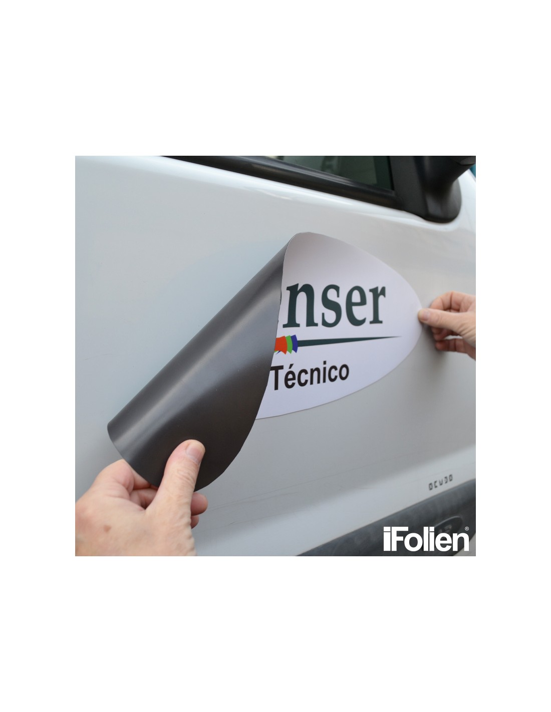 · Para imprimir diseños y crear imanes, publicidad temporal en vehículos, merchandising, etc.